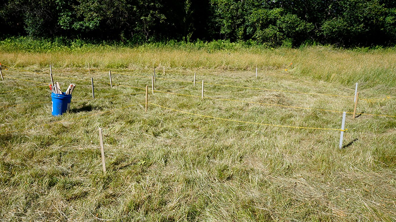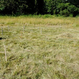Délimitation d’un emplacement maison avec des piquets et cordes