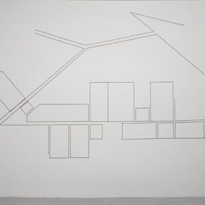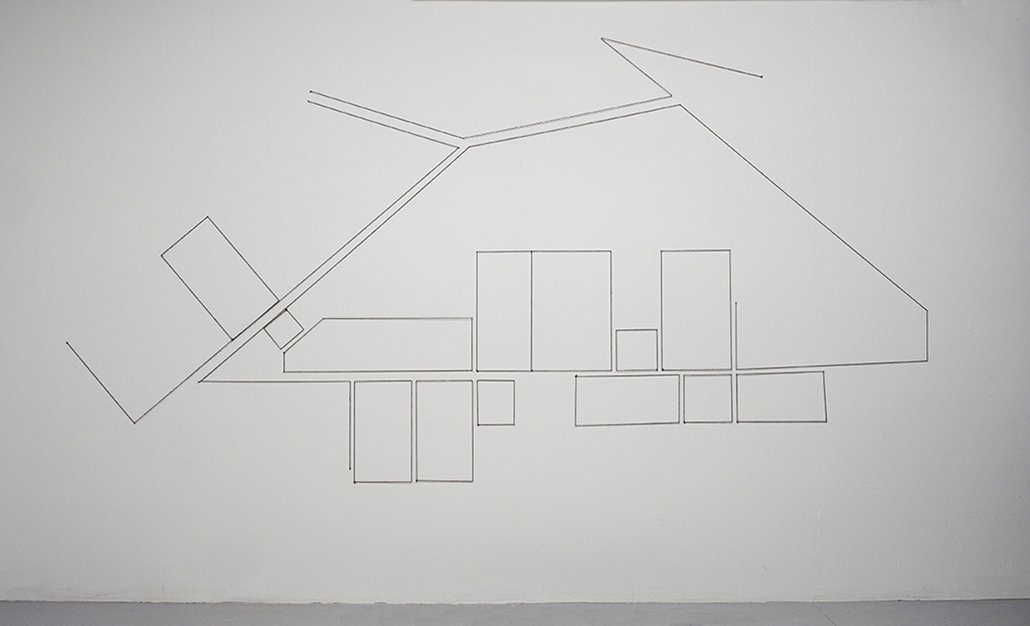 Ficelle tendue à des petits clous fixés au mus. Largeur : 12 pieds