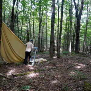 Installation d’un tissu sur une corde signe d’une présence au bois