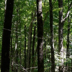 Quatre arbres reliés entre eux par un corde forment un espace